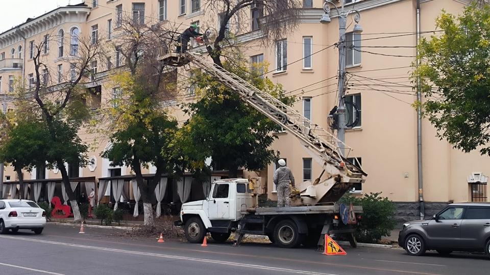 В Астрахани продолжаются работы по опиловке деревьев