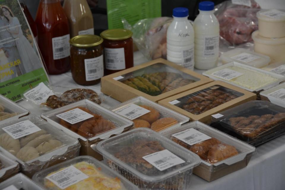 На ярмарке представлены продукты питания, консервация, астраханский мед, специи, картины астраханской тематики, деревянные иконы, вязаные игрушки, сумки, шкатулки, сладкие наборы, сувениры и многое другое. Проводится мероприятие в Азербайджанском деловом центре на ул. Бакинской, 100.