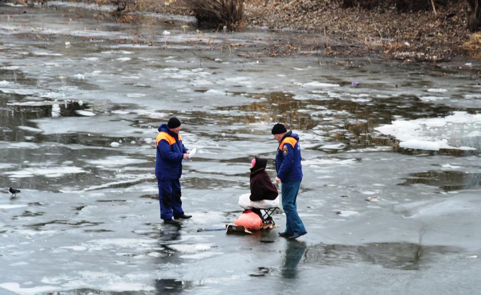 Как сообщил начальник городского аварийно-спасательного центра Виктор Рожков, в настоящее время обстановка на льду в городе очень тревожная. Температура воздуха от +2 до -2 — самая неподходящая для выхода на лед. Максимальная толщина льда, которая была зарегистрирована на Лебедином озере, составляла всего 5 см. Это в два раза меньше минимального безопасного порога. Но ни рыбаков, ни, что самое важное, детей, это не останавливает. Нарушая правила безопасности, они выходят на тонкую поверхность не до конца замерзших водоемов. Хотя у каждого спуска на воду администрация Кировского района разместила предупреждающие таблички.