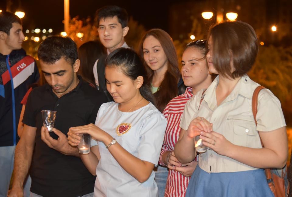 Молодые люди, собравшиеся у памятника Гейдару Алиеву, зажгли свечи в память о жертвах терроризма. «Эта акция проводится в нашем городе ежегодно. Сегодня в ней приняли участие студенты астраханских вузов и колледжей, члены общественных движений», — рассказал сотрудник городского управления по связям с общественностью Эльвин Гусейнов.