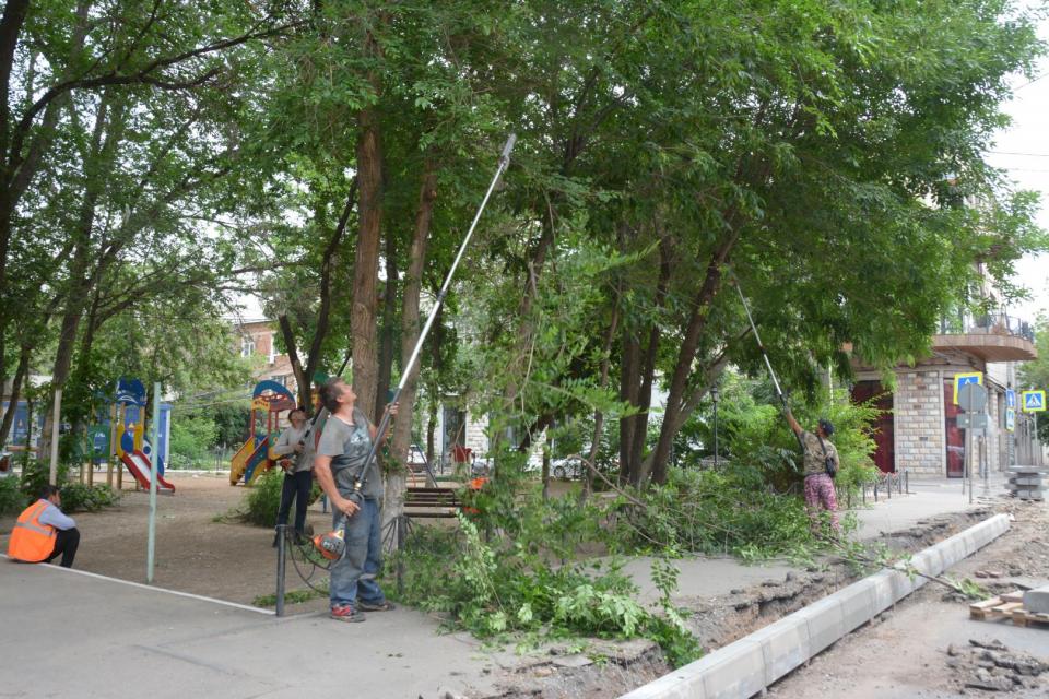 Специалисты муниципального учреждения «Зеленый город» провели опиловку зеленых насаждений, нависающих над пешеходными зонами на участках улицы Свердлова, а также в сквере им. Трусова по ул. Эспланадной.