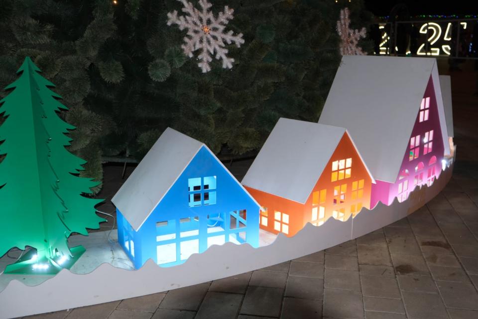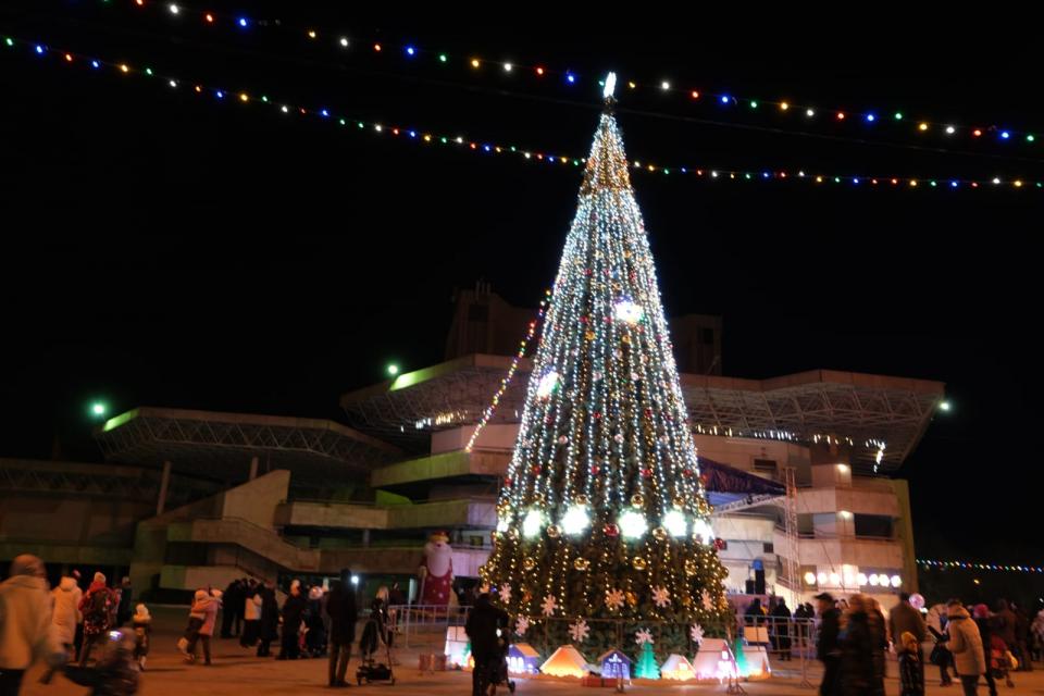 Елку в этом году установили в парке дворца культуры «Аркадия». Ее украсили шарами и гирляндой, общая протяженность которой составила 960 метров, что на 300 метров больше, чем в прошлом году. Накануне огни торжественно зажгли. На открытие центральной городской елки уже традиционно многие пришли целыми семьями.