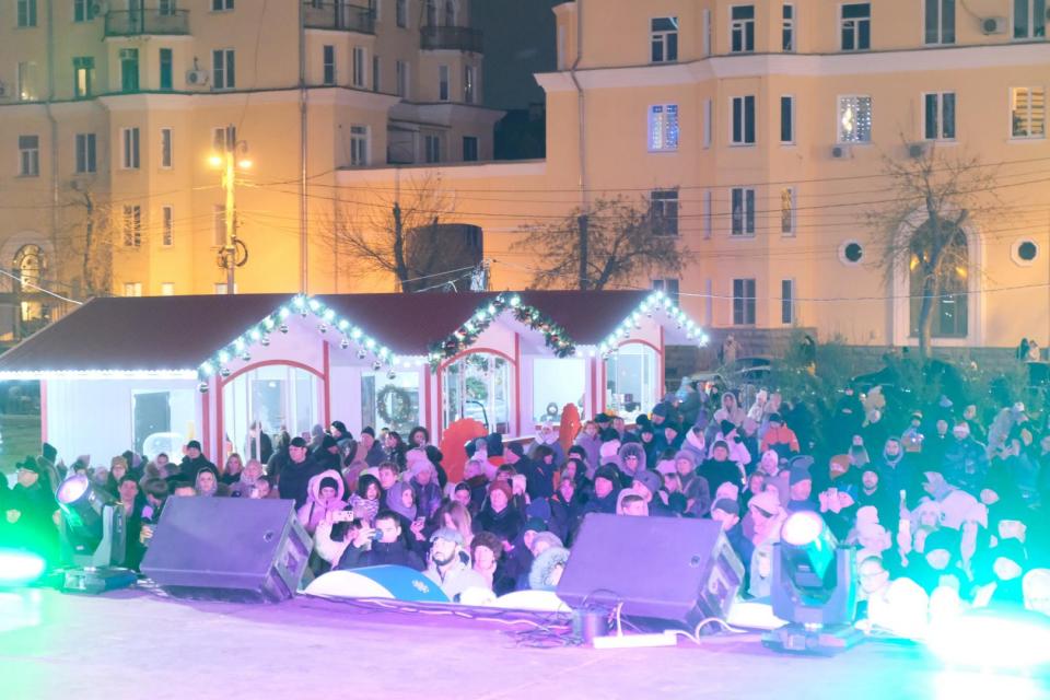 Кульминацией вечера стало появление Деда Мороза со Снегурочкой. По их команде и по просьбам собравшихся астраханцев сотни огней вспыхнули на главной ёлке. В этом году она светодиодная, украшена 700 шарами.
