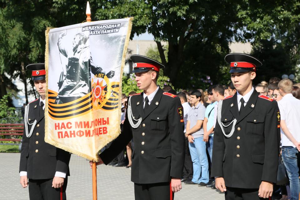 У Вечного огня собрались ветераны, представители областной и городской администрации, военно-патриотических и общественных организаций, казачества, курсанты Суворовского военного училища, школьники и студенты. Почетным гостем стала внучка генерала Ивана Васильевича Панфилова Айгуль Байкадамова, которая специально приехала на астраханскую вахту памяти из Казахстана. Участники митинга вспоминали о легендарной сформированной 75 лет назад Панфиловской дивизии, бойцы которой за время сражений сплотились в единое боевое братство. Также на митинге состоялась торжественная встреча штандарта Вахты памяти, а его участники возложили цветы к Вечному огню. Мероприятия в рамках акции продолжились в Музее боевой славы, где Айгуль Байкадамова рассказала молодежи о своем героическом предке. Здесь же была организована фотовыставка, посвященная деятельности астраханских патриотов, и представлены находки поисковых отрядов.