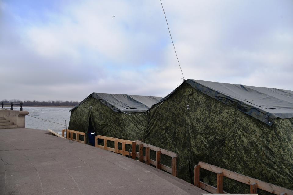 Для удобства астраханцев при содействии администрации города на «Стрелке» у Дворца бракосочетаний уже смонтированы две купальни и две палатки для переодевания (мужская и женская), установлено дополнительное освещение территории, налажен обогрев. После купания можно будет согреться горячим чаем. Окунуться в ледяную воду здесь можно будет после трех часов ночи - по окончании торжественной литургии в Успенском соборе, прохождения крестного хода от кремля до набережной Волги и совершения обряда освящения воды.