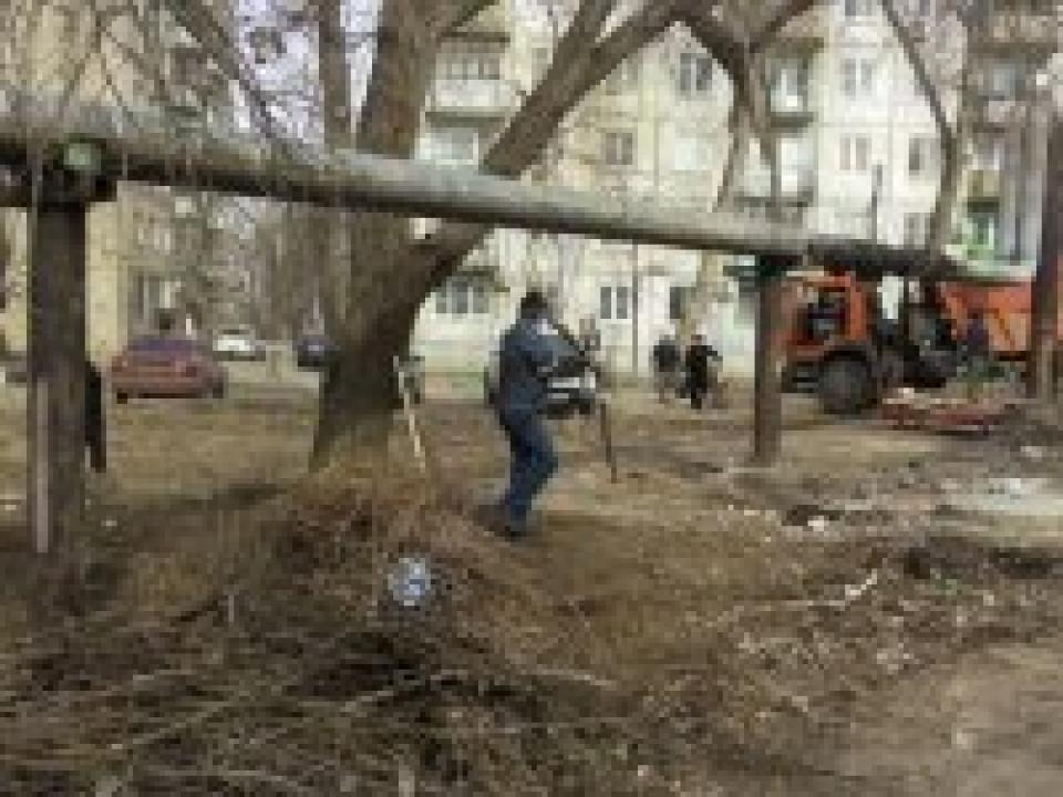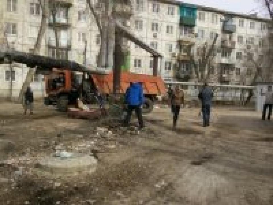 На субботник, организованный администраций Ленинского района вышли жители прилегающих домов.