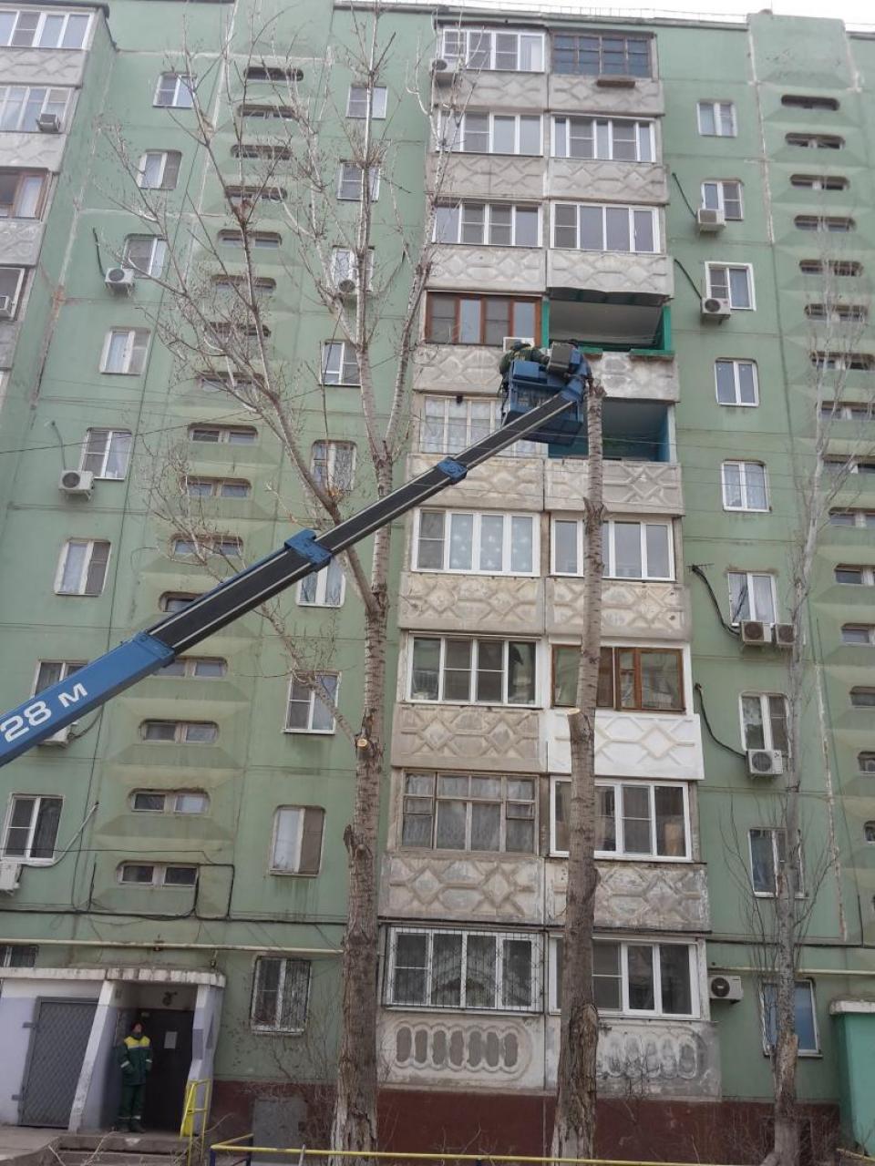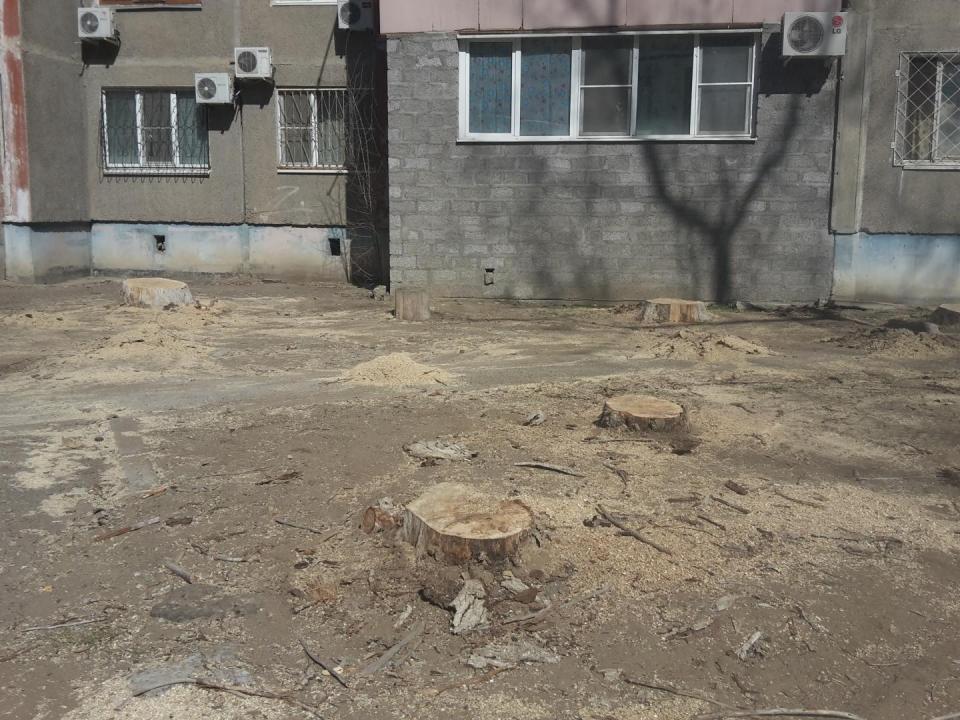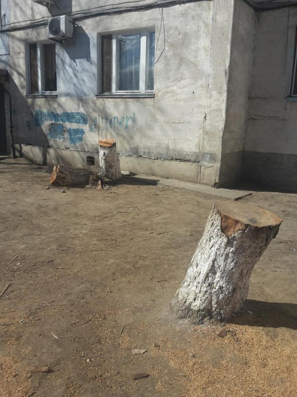 В Ленинском районе продолжаются работы по опиловке и сносу деревьев.