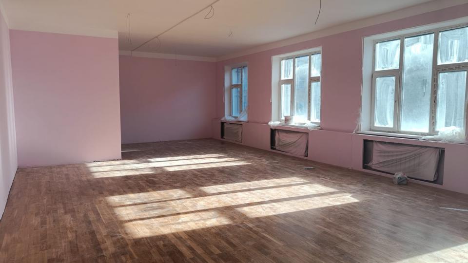 Его начали возводить еще в 2020-м, но подвел подрядчик. Из-за нарушения сроков администрации города пришлось разорвать с ним контракт. Сейчас стройку завершает другая профильная организация, выбранная на конкурсной основе. К текущему моменту полностью готова коробка здания. Подведены коммуникации, специалисты занимаются внутренней отделкой: практически завершили покраску стен, приступили к укладке паркета и линолеума. В ближайшие дни займутся наладкой освещения и установкой сантехники.