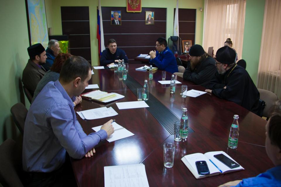 16.02.2017 глава администрации района при участии заместителя прокурора прокуратуры Ленинского района г. Астрахани, заместителя начальника управления по связям с общественностью администрации МО «Город Астрахань», руководителей религиозных организаций в рамках взаимодействия с общественностью и правового просвещения проведен круглый стол на тему «Религия и межнациональные отношения».
