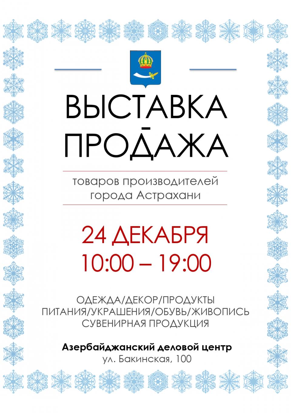 Уже завтра, 24 декабря, в областном центре состоится выставка-продажа товаров астраханских производителей, приуроченная к новогодним праздникам. Все желающие смогут ознакомиться и приобрести изделия местных мастеров и производителей: предметы декора, аксессуары и бижутерию, одежду и обувь, сувенирную продукцию, выпечку, продукты и многое другое.