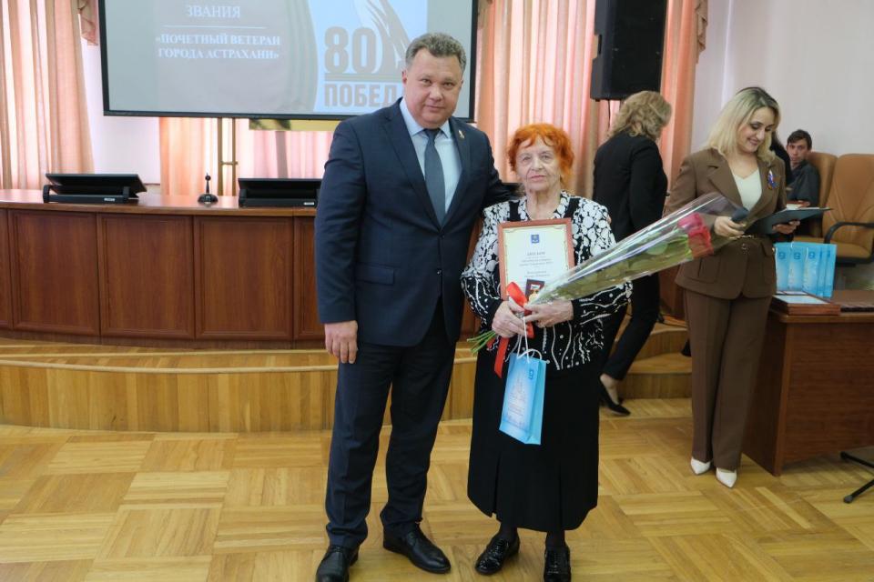 В городской администрации прошло торжественное мероприятие, посвящённое 80-летию Великой Победы, в ходе которого глава города Игорь Редькин вручил удостоверения и нагрудные знаки «Почётный ветеран города Астрахани» астраханским ветеранам и труженикам тыла. Это высокое звание получили: