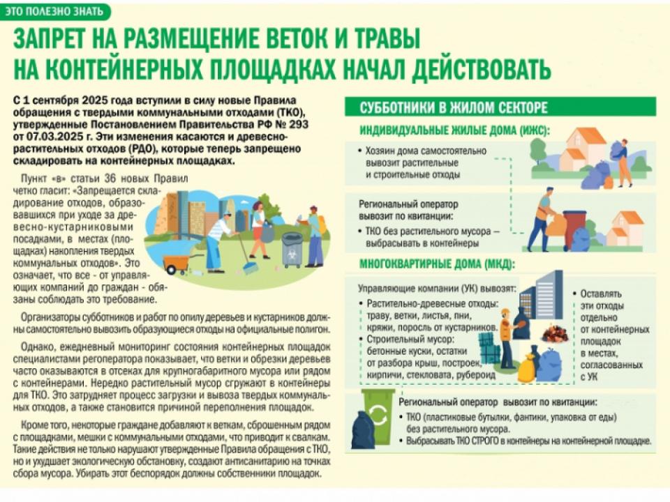 Запрет на размещение веток и травы на контейнерных площадках!