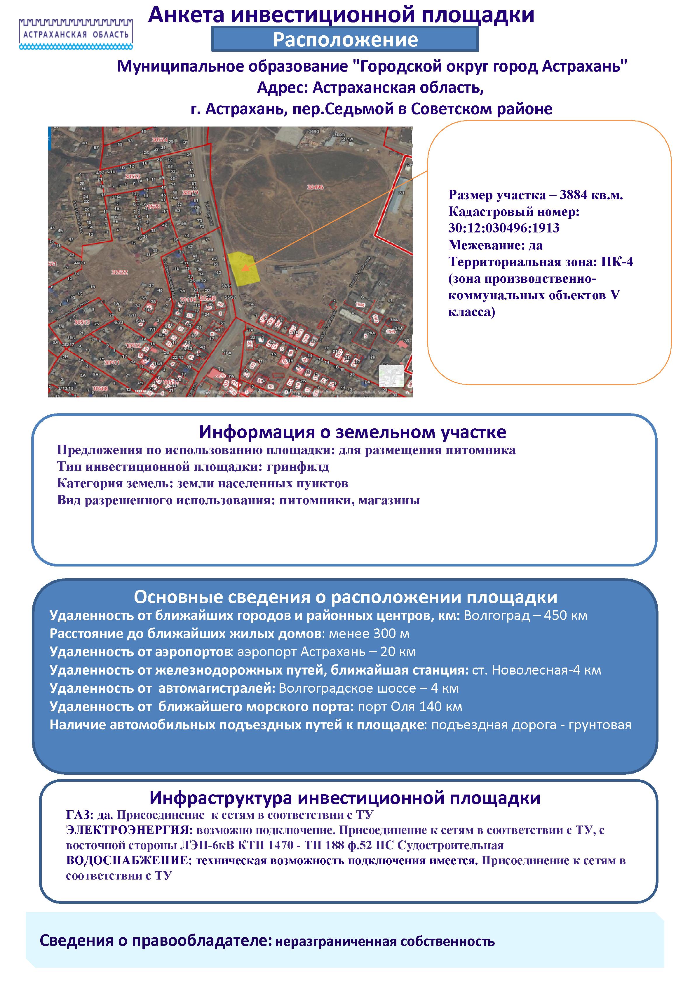 - Анкета инвестиционной площадки г. Астрахань, пер.Седьмой в Советском районе