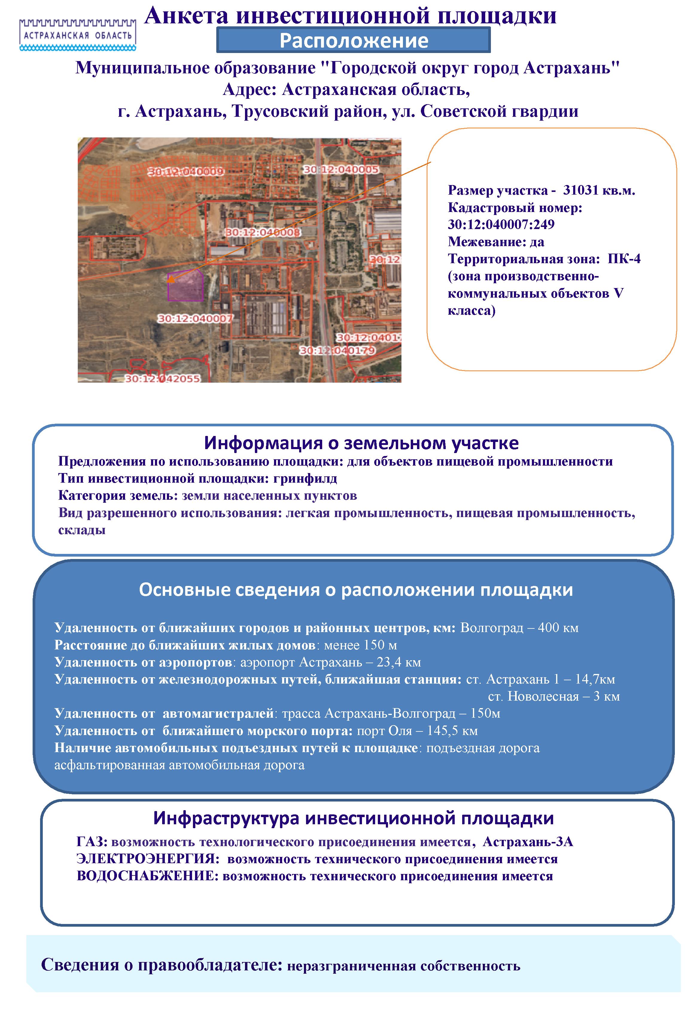 - Анкета инвестиционной площадки Астраханская область, г. Астрахань, Трусовский район, ул. Советской гвардии