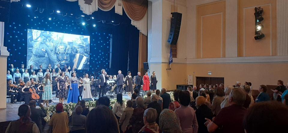 Слова благодарности за великий подвиг народа и его великий труд в тяжелое послевоенное время звучали под аккомпанимент эстрадно-джазового и камерного оркестров и лучших артистов филармонии.
