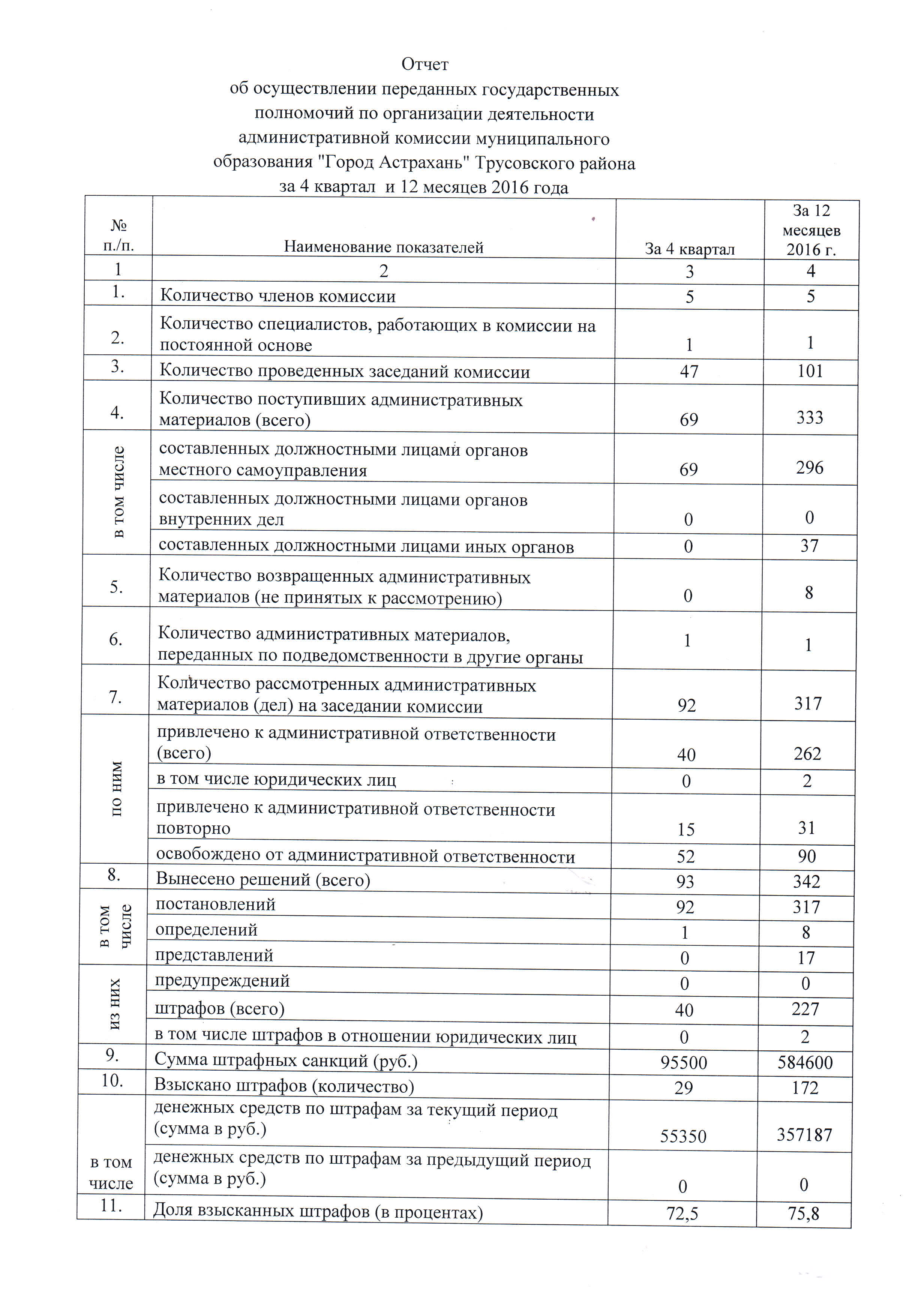 Отчеты о деятельности административной комиссии Трусовского района г. Астрахани