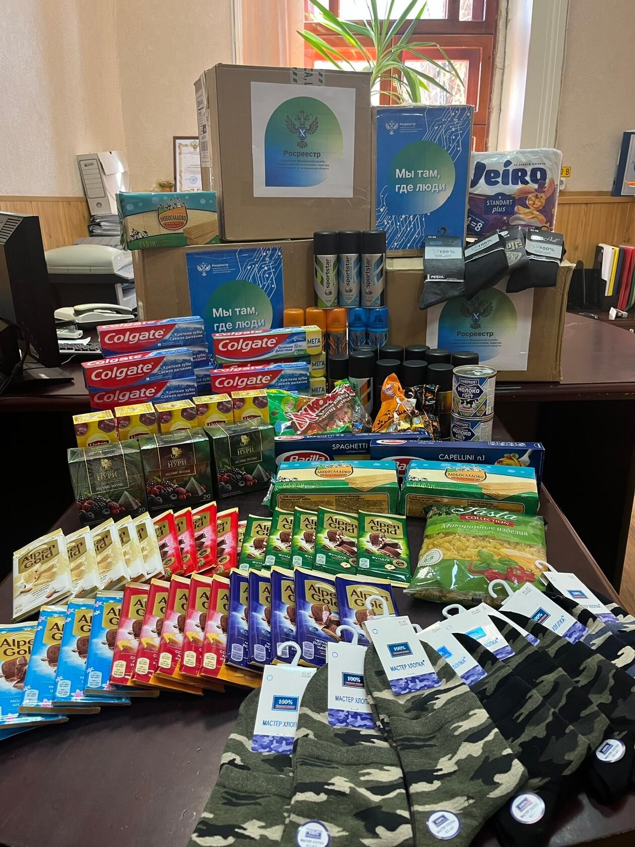 Сотрудники подготовили и передали к отправке продукты длительного хранения, сладости, чай, вещи, предметы личной гигиены, табачную продукцию, а также трогательные письма и открытки от детей работников.