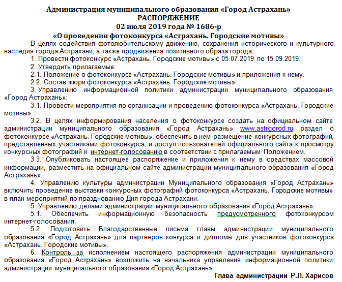 «Город Астрахань» от 02.07.2019 № 1686-р»
