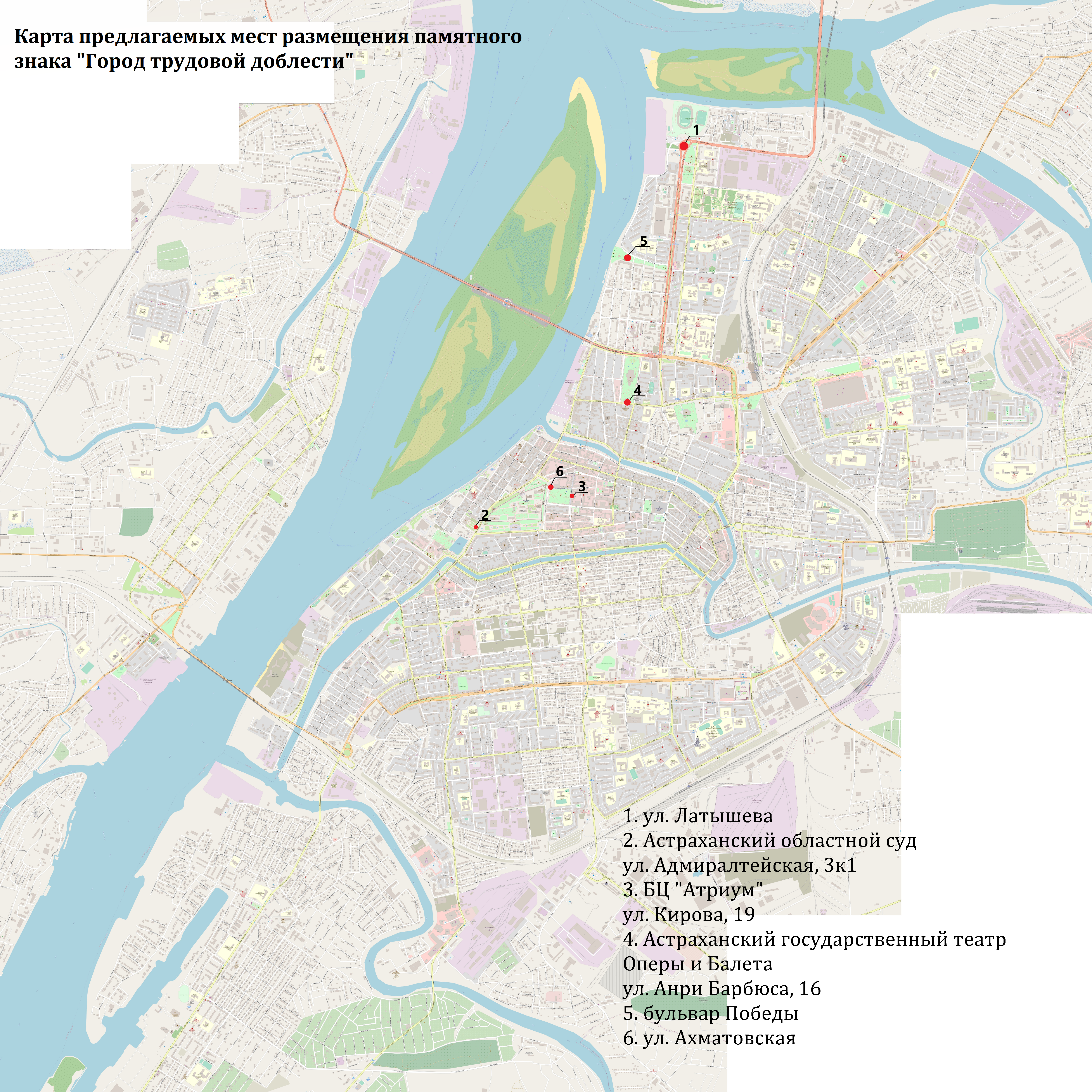 Голосование среди населения по выбору места размещения стелы, увековечивающей вклад астраханцев в Победу в Великой Отечественной войне