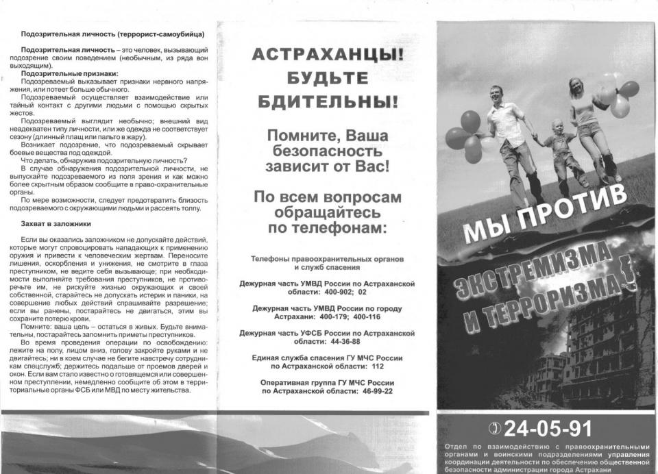 КДН и ЗП Кировского района в рамках муниципальной программы муниципального образования «Город Астрахань» «Безопасность» реализуются оперативно-профилактические мероприятия, направленную на противодействие проявлениям экстремизма, терроризма
