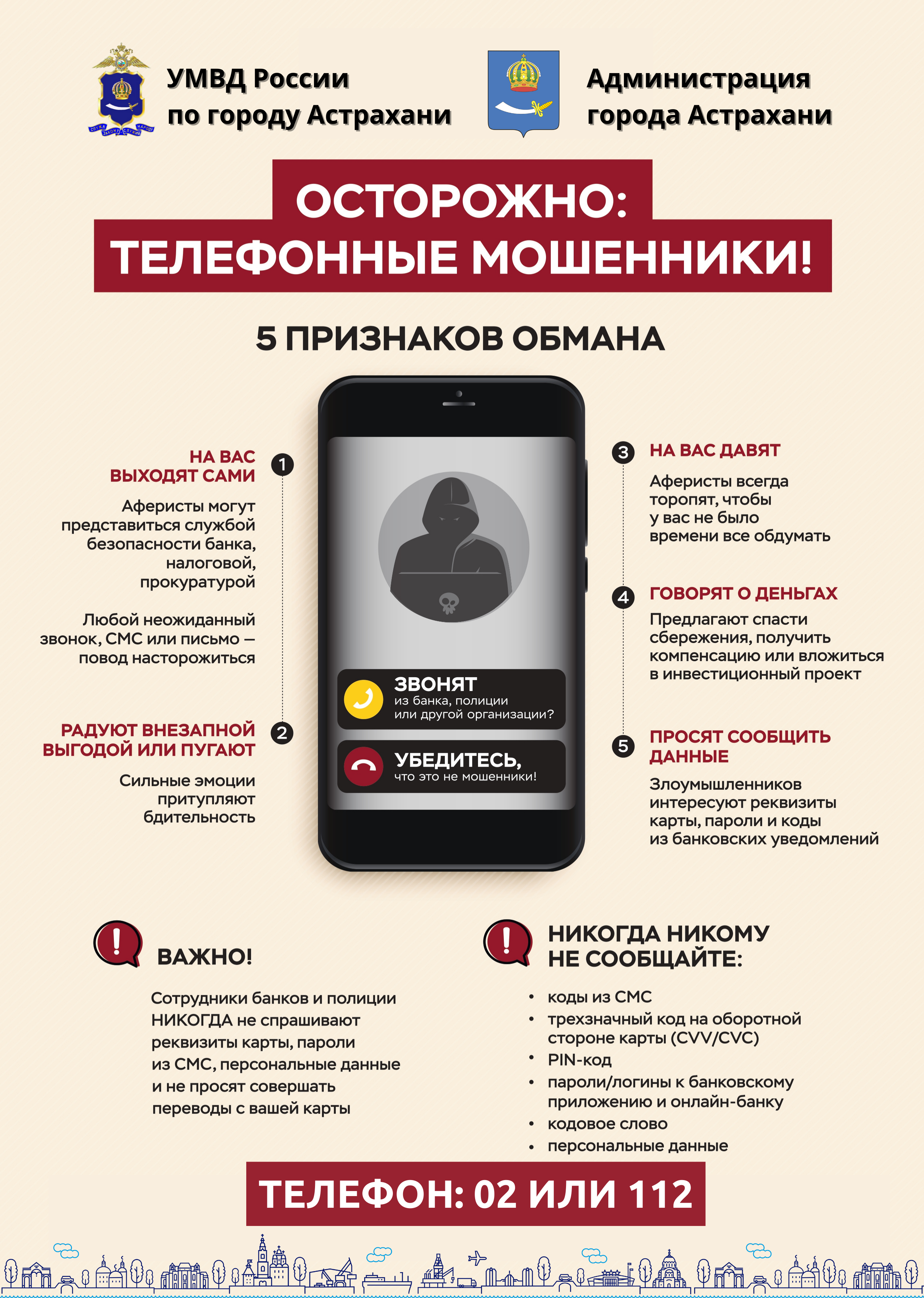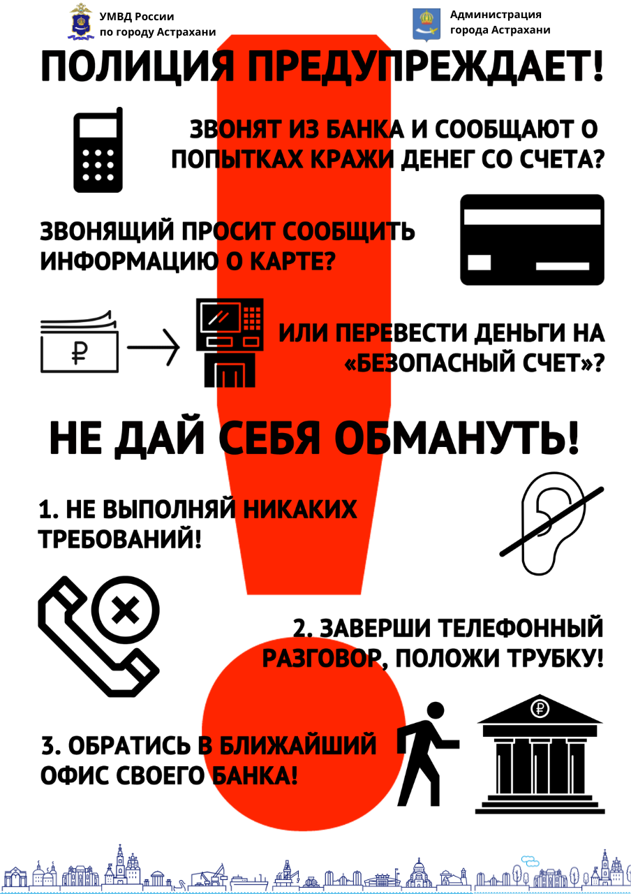 Управлением МВД России по Астраханской области с 14 по 21 сентября 2023 года проводится профилактическая акция "Внимание! Мошенники!".
