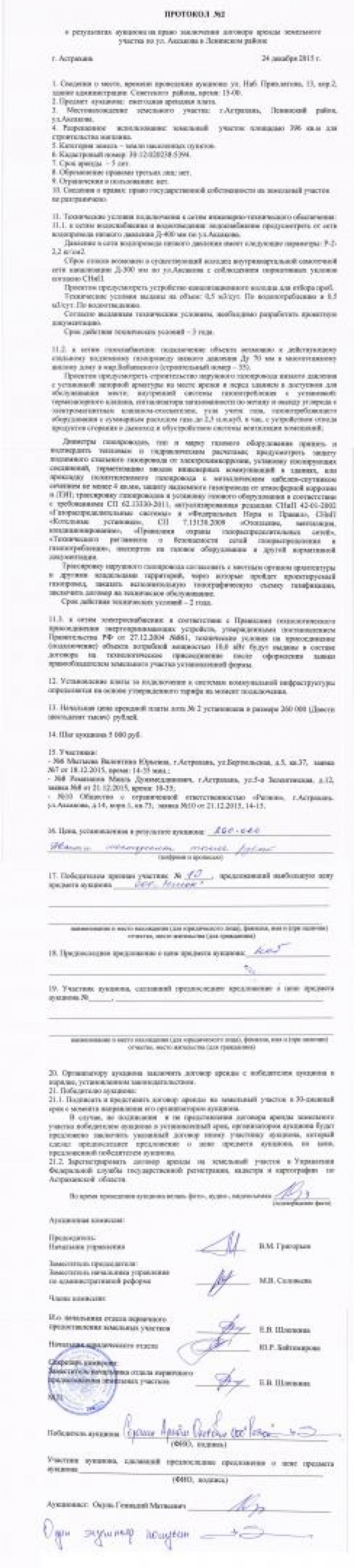 Протокол №2 о результатах аукциона 24.12.2015