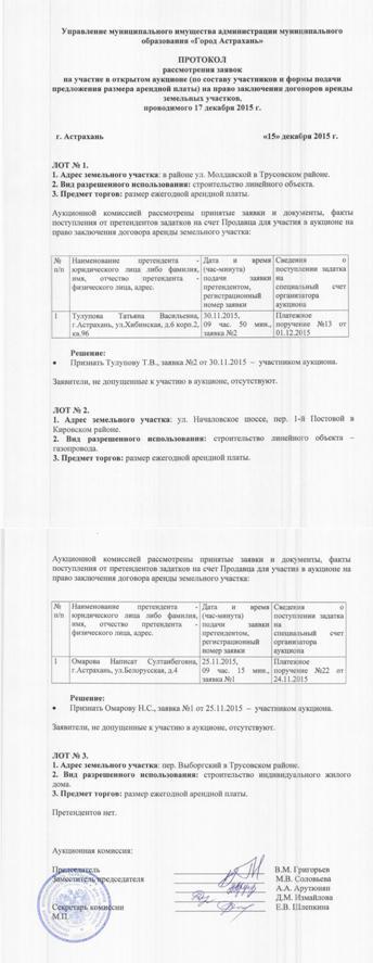 Протокол рассмотрения заявок на аукцион 17.12.2015