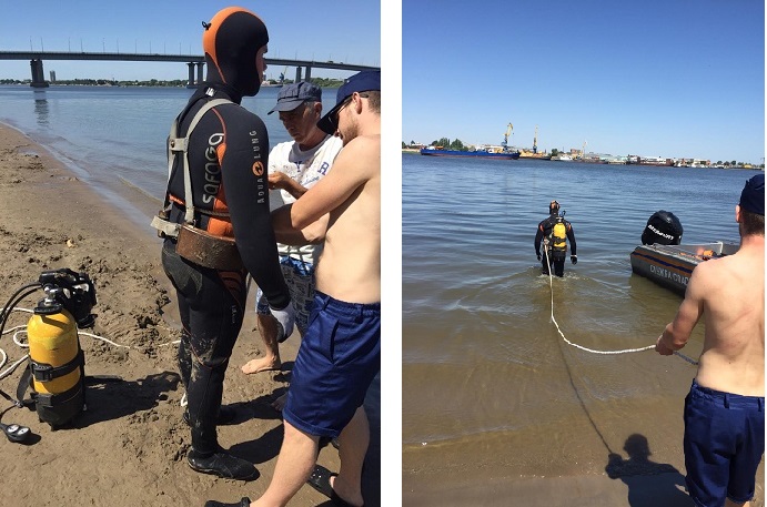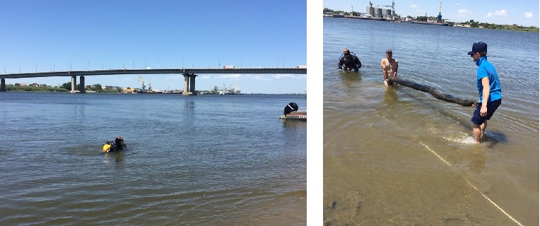 Обследование дна водолазами ГКУ Волгоспас 2-го участка со стороны трусовского района протяжённостью 200 метров