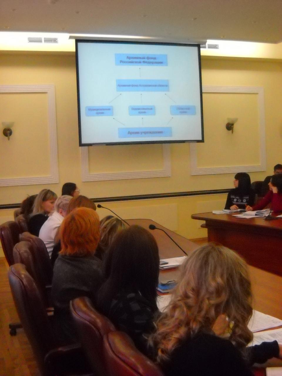 26 января 2012 года в малом зале администрации города Астрахани состоялось совещание-семинар «Проблемы сохранности документов в организациях (структурах). Подготовка документов для передачи в городской архив»...