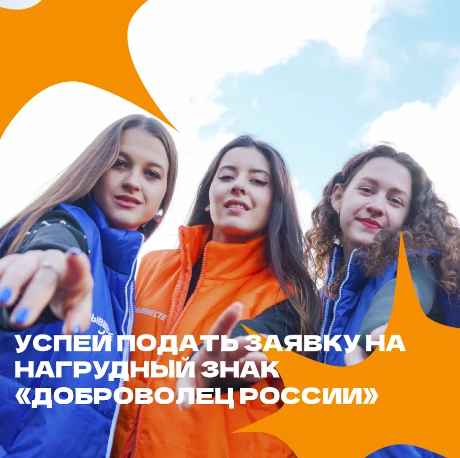 Открыт прием заявок на получение нагрудного знака «Доброволец России» за волонтерскую деятельность.