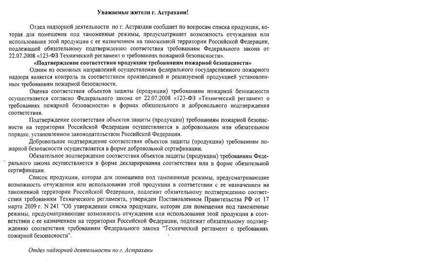 МЧС России информирует: "Подтверждение соответствия продукции требованиям пожарной безопасности"