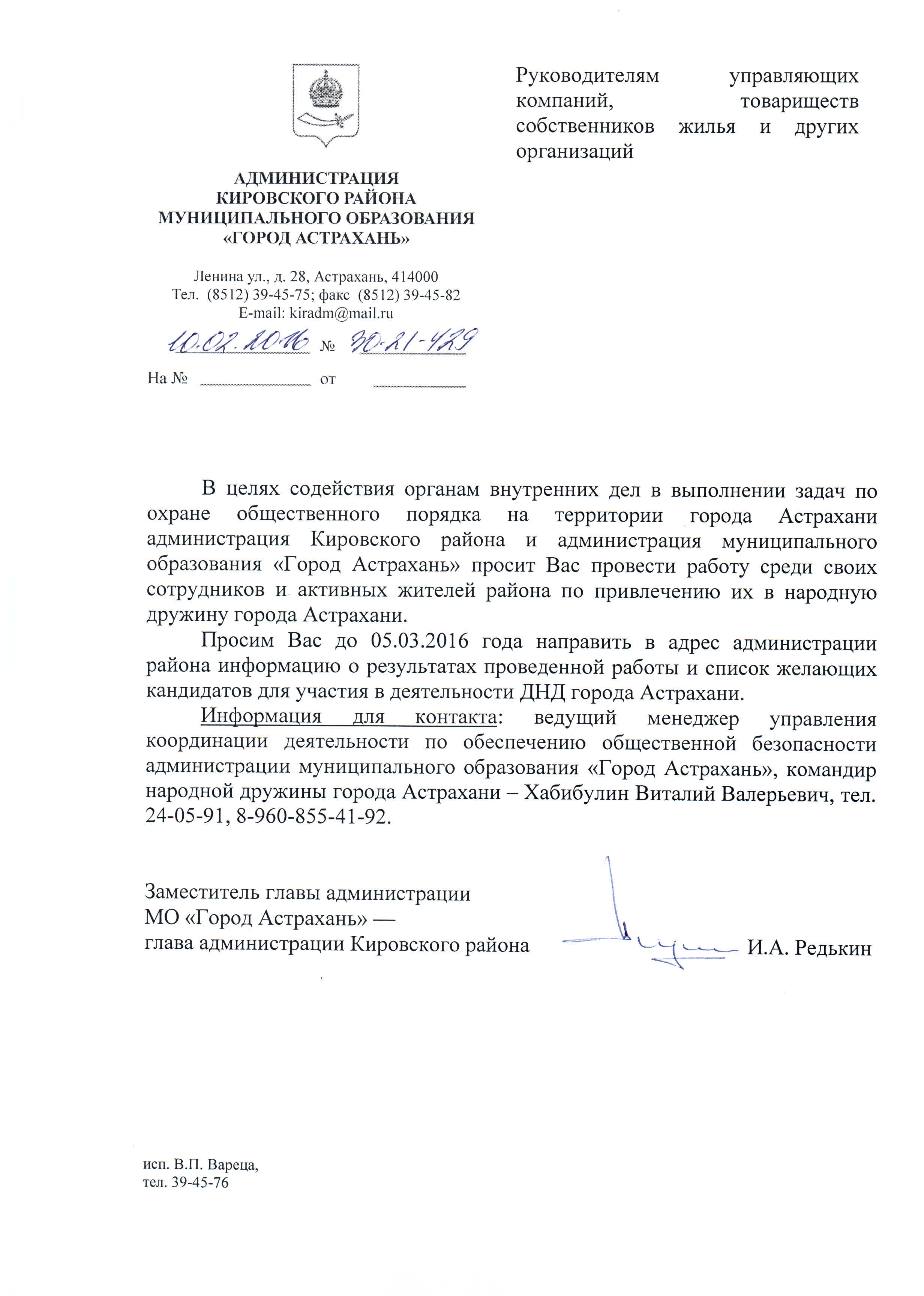 ПИСЬМО О ВОВЛЕЧЕНИИ ГРАЖДАН В НАРОДНУЮ ДРУЖИНУ