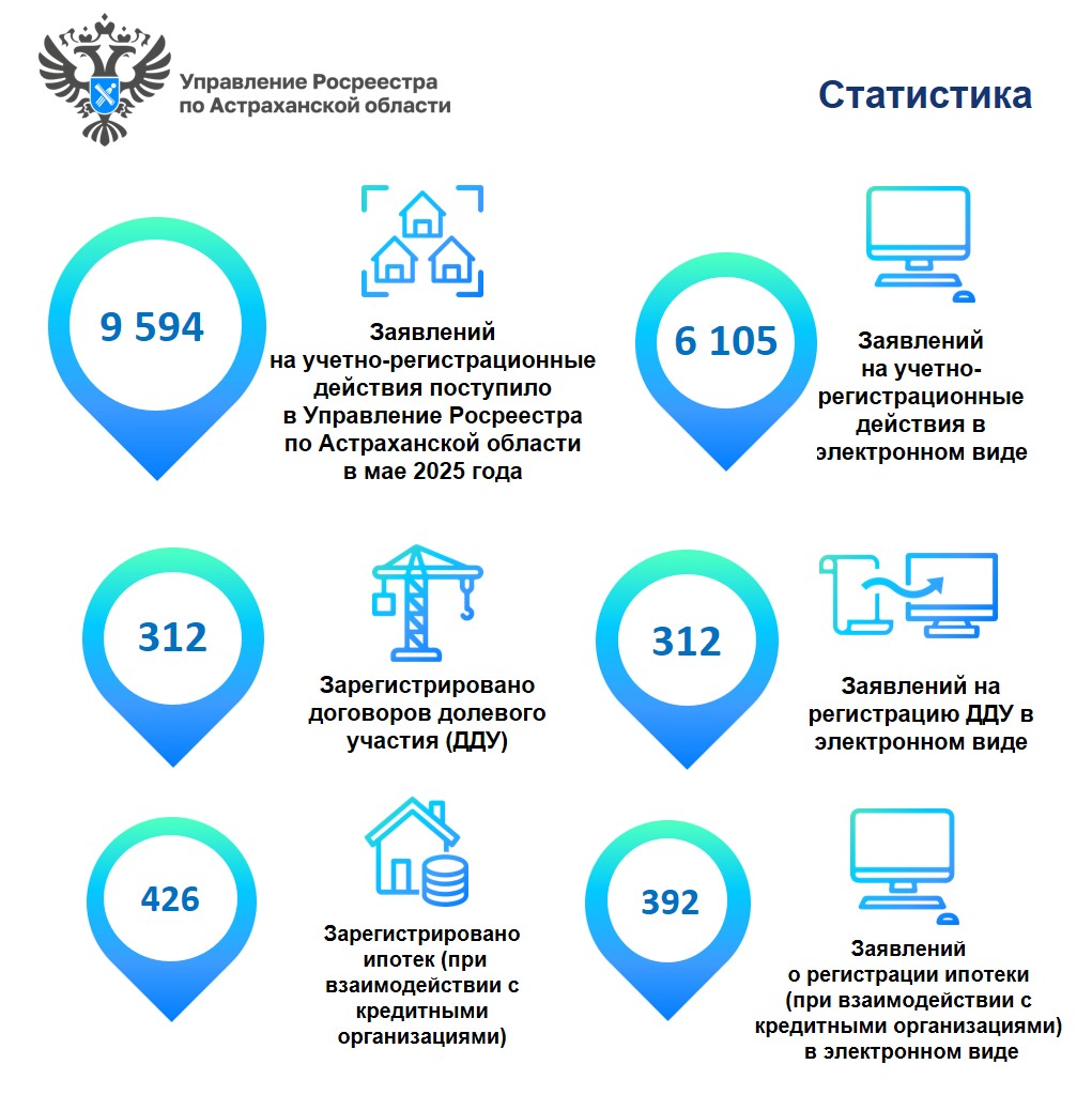 Управление Росреестра по Астраханской области информирует о количественных показателях в учетно-регистрационной деятельности в мае 2025 года.