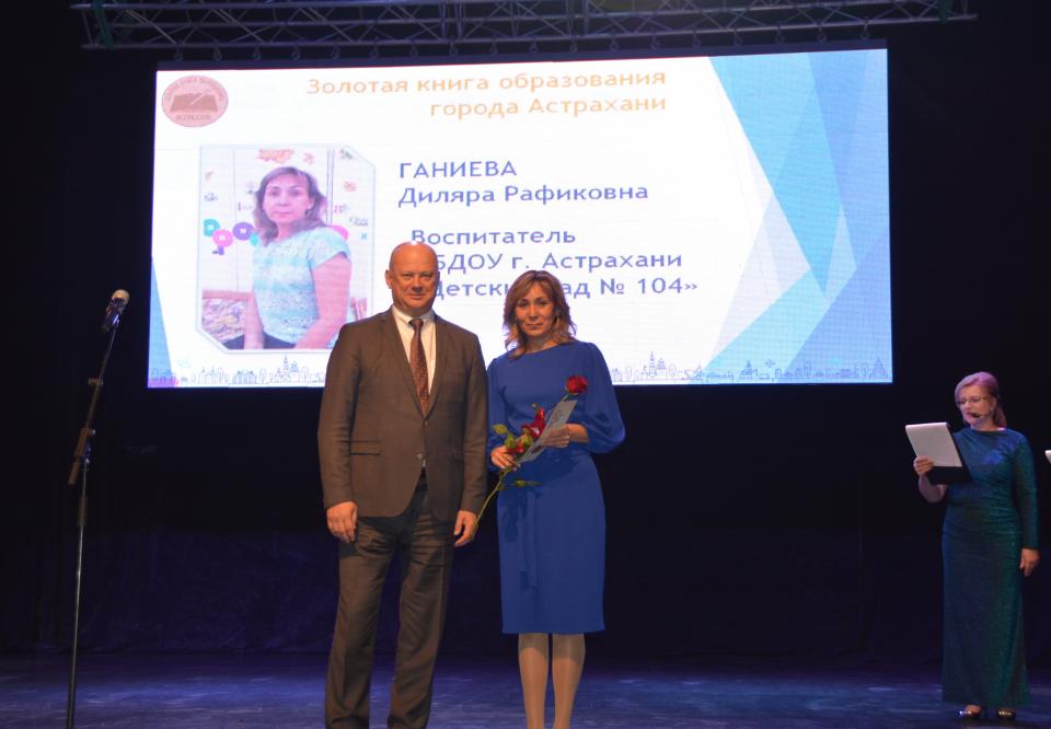 Глава Астрахани вручил нагрудный знак и удостоверение педагогическим работникам, чьи имена в этом году внесены в Золотую книгу образования. Среди них и воспитатель детского сада №104 Диляра Ганиева. «Я работаю в этом детском саду с 1995 года и уже выпускники приводят в наш сад своих детей, — рассказала она. — Конечно, мне очень приятно было получить сегодня такую высокую награду, но самое главное для меня – улыбки детей, которые приходят утром в сад со словами: «Здравствуйте, мы вас любим!»