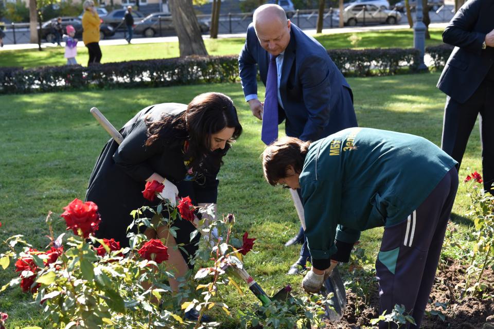 На этой неделе специалисты муниципального предприятия «Зеленый город» совместно с администрацией Астрахани высадили деревья: ясени, катальпы, липы, и кустарники в сквере у Дворца правосудия. А на площади Ленина к высадке цветов присоединились глава города Алена Губанова и руководитель администрации Астрахани Олег Полумордвинов. Около 700 кустов породы флорибунда и бордюрных роз теперь будут радовать астраханцев. Сами розы должны успеть укорениться до морозов. А когда пройдут первые заморозки, растения начнут готовить к зиме. После, весной, их откроют уже с бутонами.