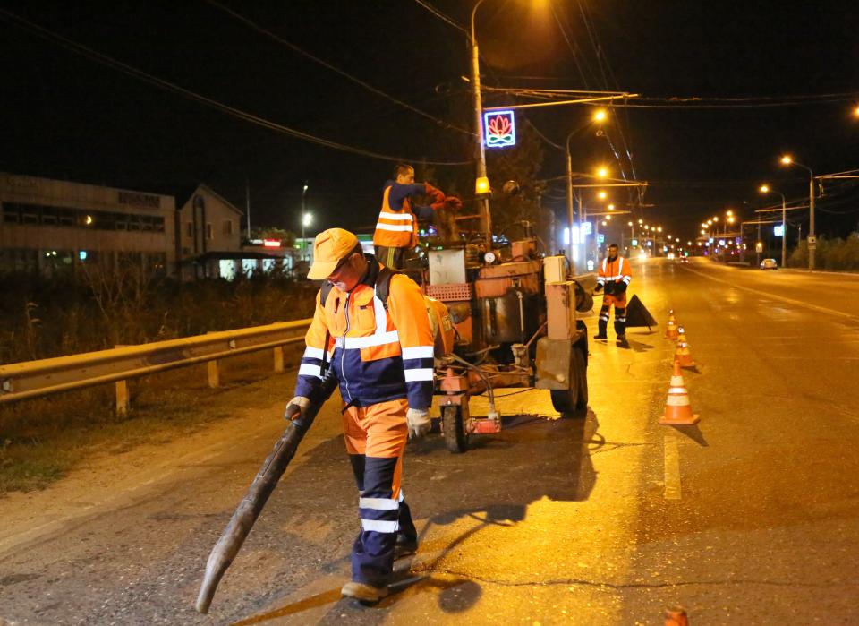 В текущее содержание дорог входит целый комплекс мероприятий: это установка леерных ограждений и знаков, нанесение разметки. Еще один пункт – заливка битумом трещин в асфальтобетонном покрытии. Подобные работы выполнены на Аэропортовском шоссе. В данный момент проводится ремонт дорожного полотна по ул. Дарвина на участке от ул. Ленина до Набережной 1 мая. 1600 кв.м. дороги восстановлено по ул. Бертюльской: еще вчера разбитый участок дороги сегодня «оделся» в асфальт. Более шести тысяч квадратных метров восстановлено на Фунтовском шоссе, и работы продолжаются, ведь здесь дорожникам предстоит привести в порядок 12 тысяч квадратных метров полотна. Для удобства автомобилистов подрядчики выходят на объекты ночью.