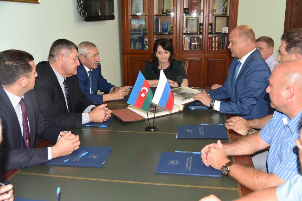 Делегация пограничников из Азербайджана в рамках своего визита в Астрахань посетила городскую администрацию. Глава города Алена Губанова и глава горадминистрации Олег Полумордвинов приветствовали гостей.