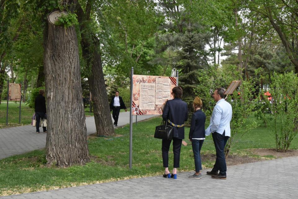 В Братском саду действовала фотовыставка «Ожившие строчки военных лет», организованная управлением информационной политики администрации Астрахани. На 43 стендах горожане могут прочесть фронтовые письма и увидеть фотографии бойцов.