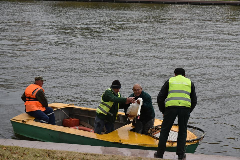 Сегодня сотрудники МБУ г. Астрахани «Зеленый город» отправили птиц с Лебединого озера на зимовку в своё тепличное хозяйство. Там появилось новое помещение, где температура воздуха составляет больше 10 градусов. Также из-за прибавления лебедей почти в два раза обновился и бассейн, он стал намного больше. Согласно рекомендациям ветеринаров, кормить лебедей будут фруктами, овощами и зерном, и еще добавят муку и витамины. В течение 2-3 дней они будут привыкать к новому месту обитания.