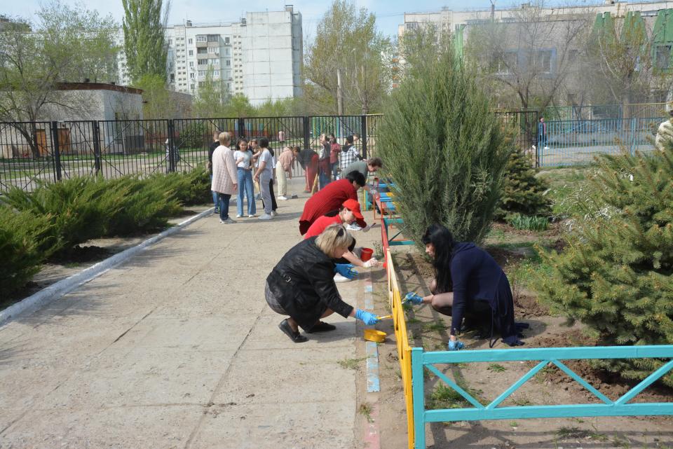 Ребята вместе с учителями и родителями очищали пришкольные территории от мусора, окапывали цветочные клумбы, красили малые архитектурные формы, белили бордюры и деревья. Многие дворы сегодня пополнились и зелеными насаждениями. Так, в школе №40 на улице Студенческой в Кировском районе высадили сирень, акации, туи. Также украсили клумбы цветами - лилейниками, ирисами и дубками. «Инициативу поддержали и родители наших учеников, которые также внесли свой вклад в наведение порядка. Всего в облагораживании пришкольного двора приняли участие около 700 человек. Что касается ребят, то привлекли учащихся с 5 по 11 класс», - рассказала директор школы Аделя Газизова.