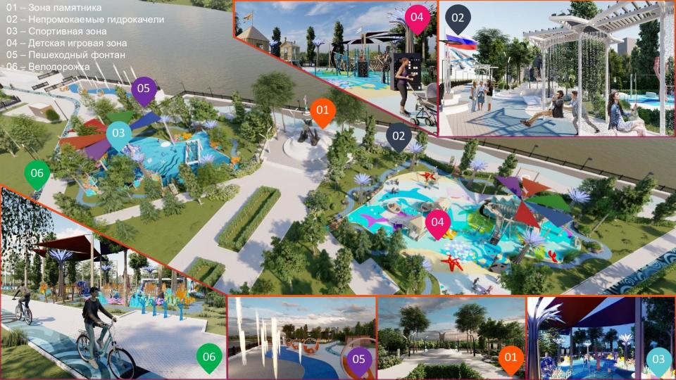 В рамках четвертого этапа реконструкции набережной планируются к реализации зона тихого отдыха у воды с нестандартными перголами с качелями-скамейками, зона кросс-букинга, зоны для выгула домашних питомцев, прогулочная зона с различными типами светильников и паровым светодинамическим фонтаном и целый ряд локаций, уникальных не только для Астрахани, но для России в целом.