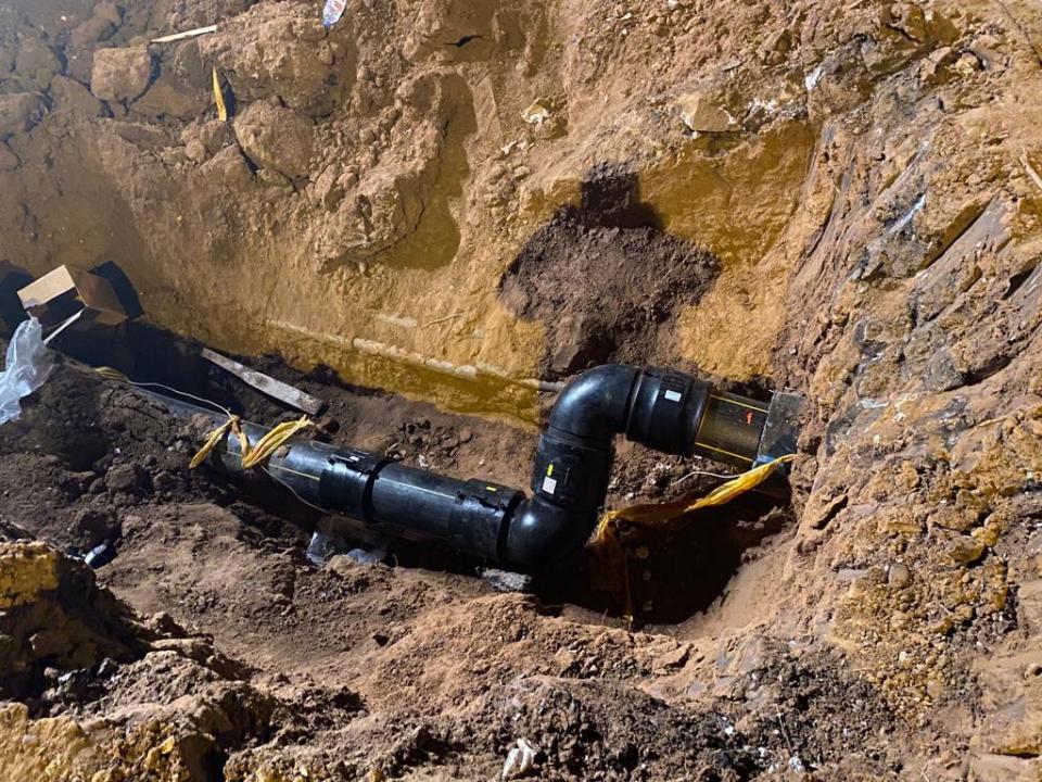 В результате обследования было выявлено повреждение газопровода среднего давления, проходящего рядом с домом. По предварительным данным труба была деформирована подрядной организацией, проводящей работы по прокладке сетей.