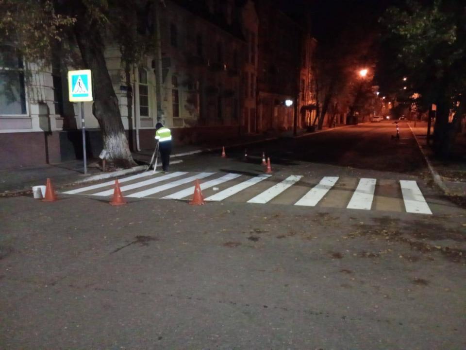 На сегодняшний день управлением дорожного хозяйства и транспорта уже выполнены работы на 40 улицах, в том числе на мостовых сооружениях и путепроводах. Так, завершены работы на улицах Волжская, Адмирала Нахимова, Дзержинского, Анри Барбюса, Боевой, Н. Островского. Сегодня ночью разметку нанесли на улицах Яблочкова и Б. Алексеева.