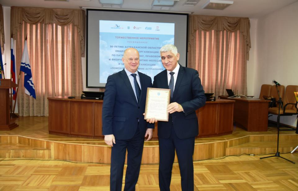 В Астрахани отметили 30-тилетие работы общественной организации по патриотическому, правовому и физическому развитию молодежи и 30-ю годовщину со дня образования поискового движения в регионе. На торжественный прием, организованный в администрации Астрахани, были приглашены ветераны и активные участники поискового движения, преподаватели, студенты и учащиеся учебных заведений города, руководители общественных организаций, представители муниципальной власти. Гостями праздника также стали глава Астрахани Олег Полумордвинов и председатель Городской думы Игорь Седов.