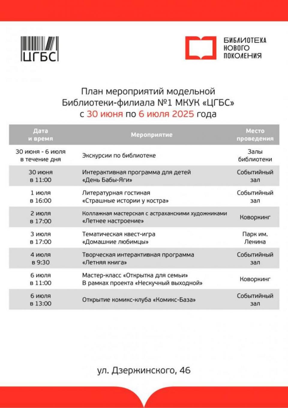Кроме того, городские модельные библиотеки подготовили целый ряд интересных мероприятий, которые будут проходить с 30 июня по 6 июля. С подробной программой можно ознакомиться в карточках.