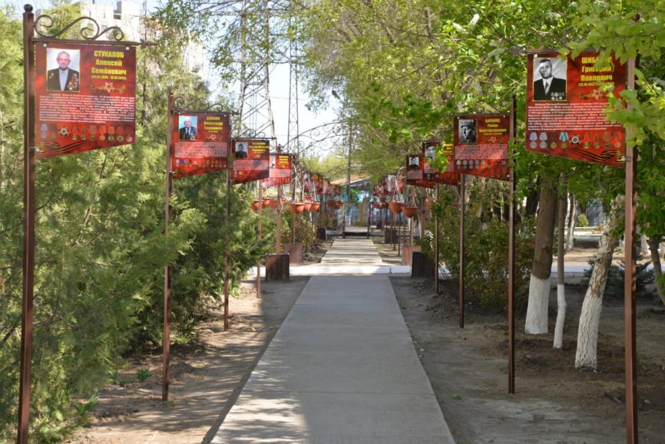 В честь 75-летия Победы, в память о ветеранах Великой Отечественной войны, в МБОУ г. Астрахани «СОШ № 27» в микрорайоне Бабаевского на территории школьного двора обустроили Аллею Славы.