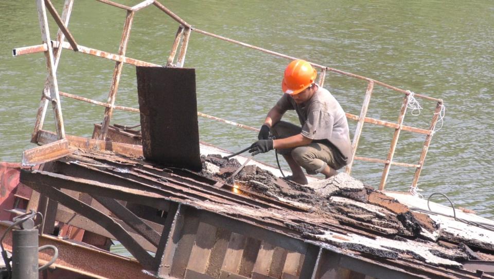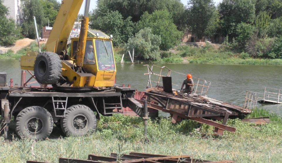 Напомним, конструкция, возведенная более полувека назад, пришла в негодность, и властями было принято решение о ее полной замене. Сейчас здесь трудятся сотрудники фирмы-поставщика. Специалистам предстоит с помощью спецтехники достать из воды затонувшие элементы переправы и установить новое сооружение. В настоящий момент рабочие разбирают надводную часть сооружения.