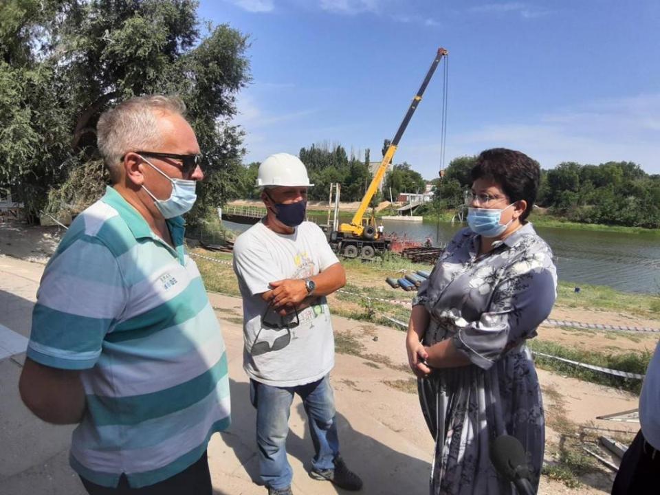Сегодня глава Астрахани Мария Пермякова провела выездное совещание у пешеходной переправы через реку Серебряная Воложка в створе улицы Бутлерова.