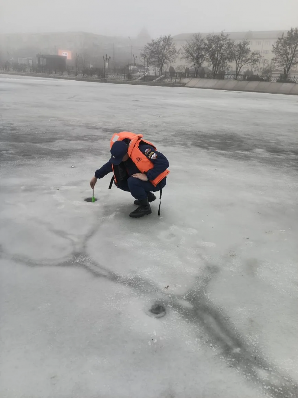 В связи с потеплением спасатели фиксируют таяние ледового покрытия на водоемах Астрахани. Очередные замеры сегодня вновь провели специалисты аварийно-спасательного центра города. Мониторинг показал, что толщина льда на Варвациевском канале и Лебедином озере опустилась до отметки в 20 сантиметров. При таком показателе массовый выход на замерзшую поверхность акваторий запрещен. Также спасатели изучили ситуацию на реке Кутум в микрорайоне 3-й Юго-Восток.