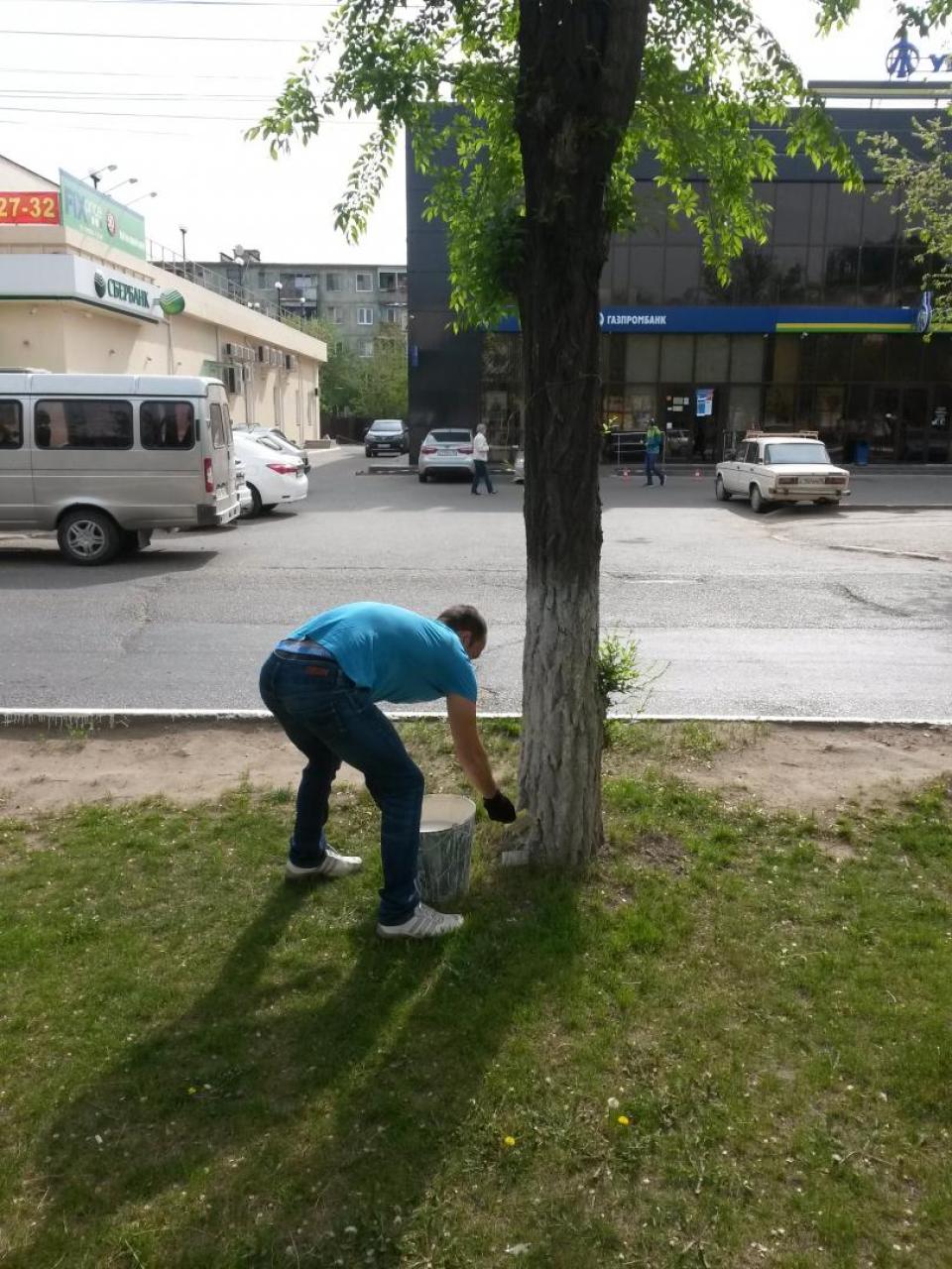 по адресу: ул. Полякова - произведена зачистка территории от случайного мусора, побелка бордюров и деревьев приствольной части;